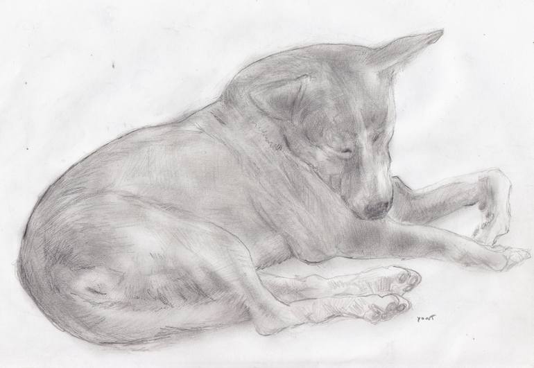 street dog sleeping 8x10 pencil drawing on paper