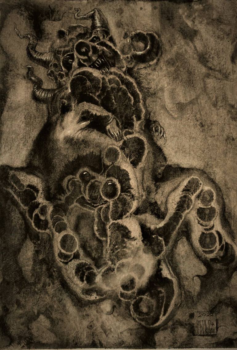 This drawing is with a new technique who I find experimenting with mediums. The theme is mystical ,from the Bible and I draw it is strange moments of my night's.