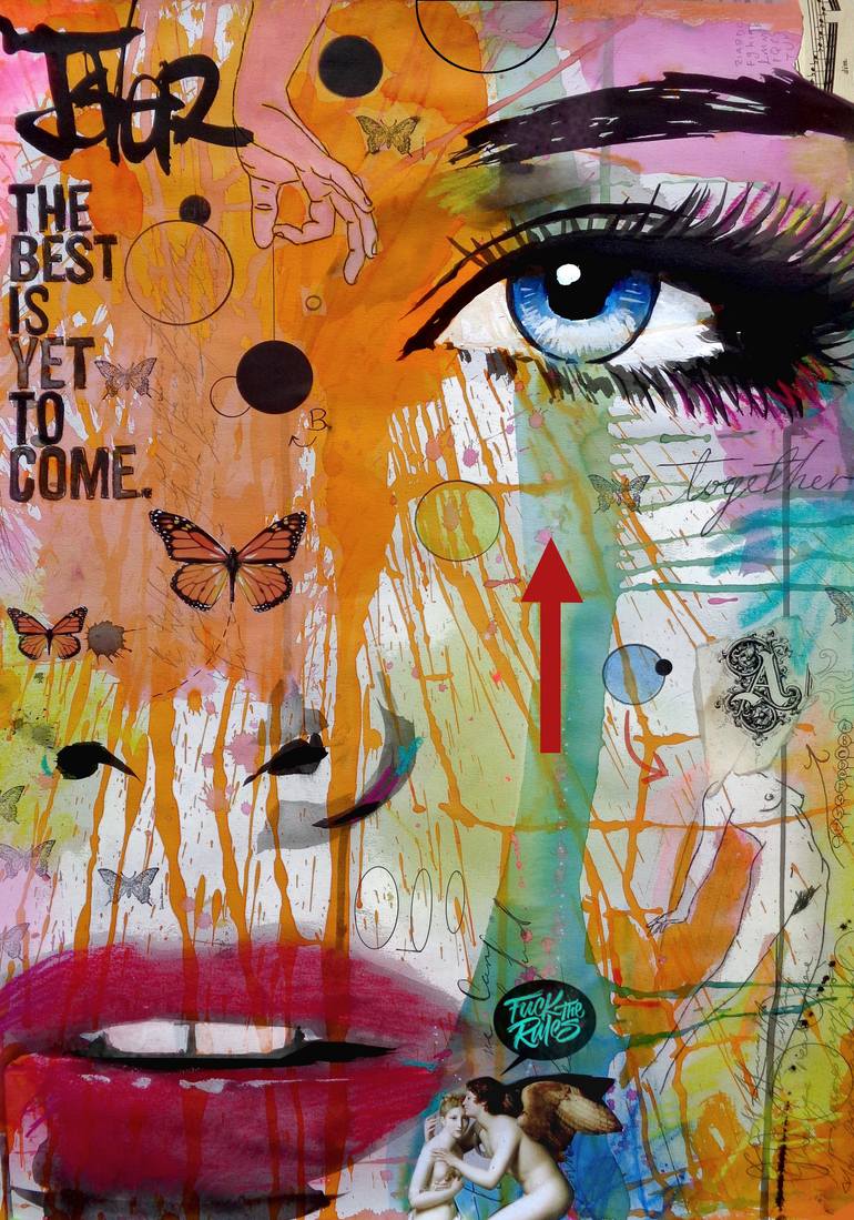 mixed media on arches paper, ready to frame as desired, I began creating this series of mixed media works to incorporate another layer to the ink faces I am known for on vintage book pages, I begin with an expressive ink face on stark white pages and build up layers of graphic almost street art like...