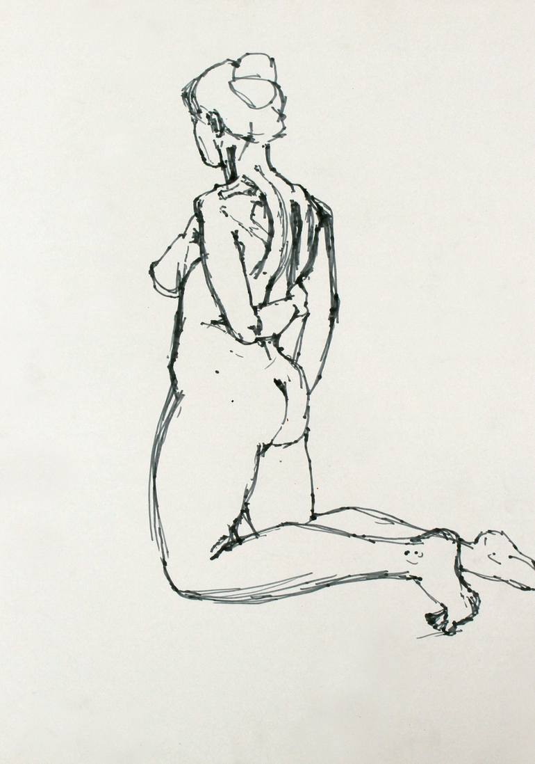 Als die Malerin nach dem Abitur beschloss Kunst studieren zu wollen, ging sie von Berlin aus für 8 Monate nach Wien. Dort nahm sie Zeichenunterricht bei der Malerin Alica Sancha. Sie nahm an Aktzeichentreffen in der Akademie teil. Dort entstand dieser Akt. Er ist mit Markern gemalt, nicht radierbare...