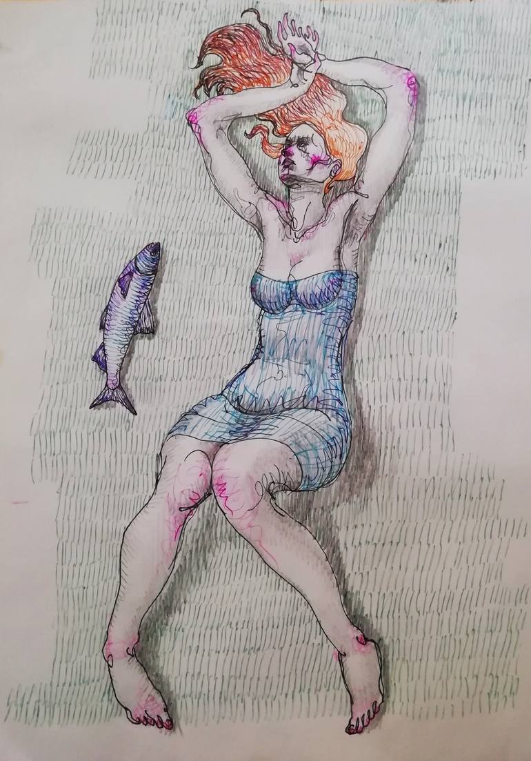 some times I draw symbols and different kinds of objects and animals and imaginary creatures to express an inner idea. and I working on studying human body and body language. I draw this with color ballpoint pens and color pencils on a paper.