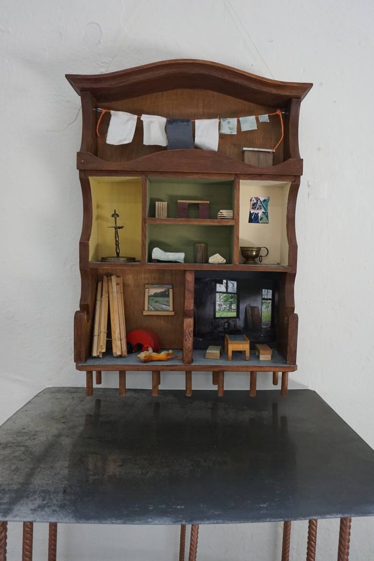 Drager Meurtant (1951) decided to also be an artist (autodidact) in later life. Creations include poems, sculptures-assemblages-collages-paintings-graphics. Assemblages and collages are a central medium: both man-made material as well as that supplied by nature (wood, stone) are used in my artworks, including discarded and found objects, with an eye for surreal meaning. Looking at structures, compositions, during the process of creation, I follow the appearence that gradually surfaces, while not keeping to a simple suit of illusions. The place of humans in society, in our world, increasingly is examined and translated into art. Many artists inspire, such as David Smith, Robert Rauschenberg, Louise Bourgeois, Joan Miro, Maria Helena Vieira da Silva. Member of the International Society of Assemblage and Collage Artists, European Sculpture Network. Supporter of Fossil free.