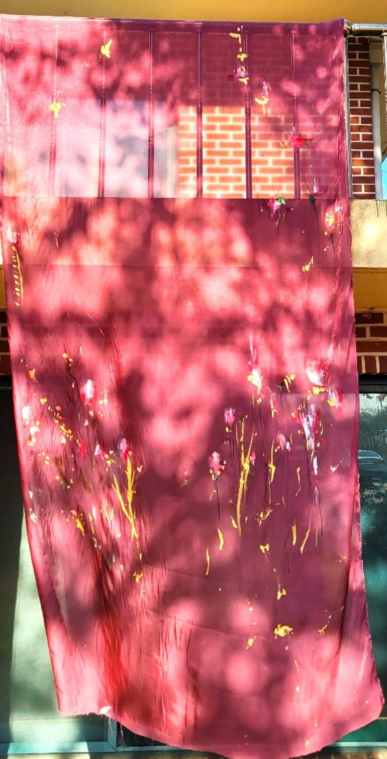 Art is closely correlated to our lives. There can be neither good art nor bad art. There is nothing but art. When I produce a work, I try not to have any feelings or expectations, and I try to listen to what the work itself is purely about, not what I ask for like a mother who wants to listen to her child carefully. I also enjoy the interventional, sequential process in which matter's spontaneity influences the work's direction. The stories of my paintings, such as figure skating, which slides on the ice on its own, or automatic technology drawn on its own without realizing it, are not intended. Rather than a big dream of changing the world with art, I love the tight concentration of working time and the happiness of being now enjoying the process. This simple statement is the beginning and the end of my philosophy that the outcome is not the artist's responsibility. It's like saying Laozi is useless. We use bowls, but we actually use the interior space divided by bowls. We build walls, but where we live is the space inside. It is our mind's consciousness that divides acts into useful and useless. So my work begins with clarity of what lies beyond that dark band, and we are amazed at the greatness of the vast universe that extends beyond our vision and human power indefinitely. As an artist, I explore the infinite possibilities of color and the various senses it evokes: silence, comfortable, sometimes intense, and stimulating. I try to work with the artist (I) on such art that time, space, and situation all coexist. I work as an artist who feels delicate energy, sensitive emotions, and vibrations of reactions. The various materials and artistic media I use come from my experiences and memories. The overall harmony of materials becomes a complete work with the sum of new materials. I approach my practice by questioning and excavating my subjective memory, spirituality, and socio-political realities. As for the medium, my love for acrylic paint and embroidery is evident in my treatment of abstract painting surfaces. The texture and material of each fabric, the volume of embroidery and the texture of the paint, the layer of overlapping prints, and the overall harmony of the materials become the sum of the new materials and finish a completed work.