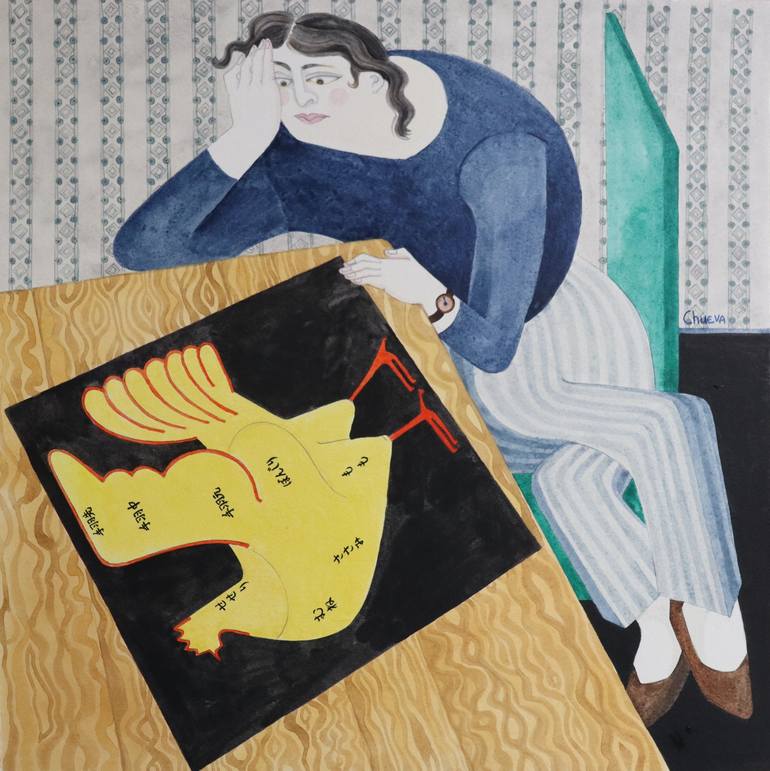 I am an artist based in Osaka. I studied arts at the Osaka City Museum of Fine Arts Institute and Osaka University of the Arts. I draw inspiration from Ukiyo-E, Persian miniature and Ancient Egyptian art. My artwork can be divided into three main thematic areas: “Running Figures”, “Scenes of Professional Activity”, “Surrounding City and Nature Scenery” (1) “Running Figures”: multiple repetition of simple schematic running human figure representing personal evolution. Figures run in the circle: inspiration→work→achievement→frustration→rethinking values→new ideas→new inspiration.. “Running Figures” are focused on monotone and rhythmic or chaotic move and can be seen from both compassionate and ironic perspectives. (2) “Scenes of Professional Activity” My main occupation is art, but by circumstances I had opportunity to get acquainted with other professions as well. Each professional environment has its own atmosphere, specific workday schedules, work processes and patterns that subordinate actions of each worker. At the same time, each employee has their own individuality and charisma. In “Scenes of Professional Activity” I study the interaction of a workplace discipline that demands unitarization and individuality of each worker. I see this interaction as a painting with a rigid composition, where each individual element is in its place, but has its own special character and colorful charisma. A rigid composition helps to reveal individual elements uniqueness, to open up and show itself in all its colors. Individual elements each in its own way color rigid composition, give it diversity, flexibility and vitality. Series of “Scenes of Professional Activity” include “School”, “Office”, “Kitchen”, “Carpenters”, “Museum”, “Theater” (3) “Surrounding City and Nature Scenery” Observing is an important part of creating process, it helps to find color combinations, new shapes, compositions. Outdoors I take pictures and make quick sketches, back in studio I draw and make notes in an archive notebook, so that I can get back to it anytime later. Sometimes make paintings based on these photos, sketches and drawings, I also often use these materials in “Running Figures” and “Scenes of Professional Activity”