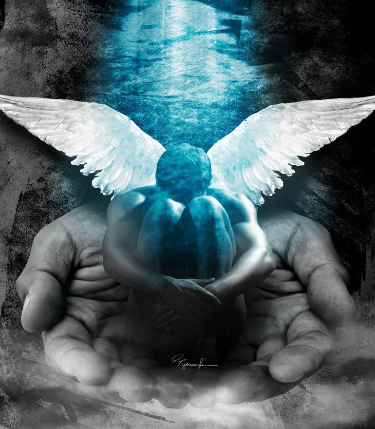 H Resolution print on HQ canvas shiny dust conceptual art The Adem in god's hands