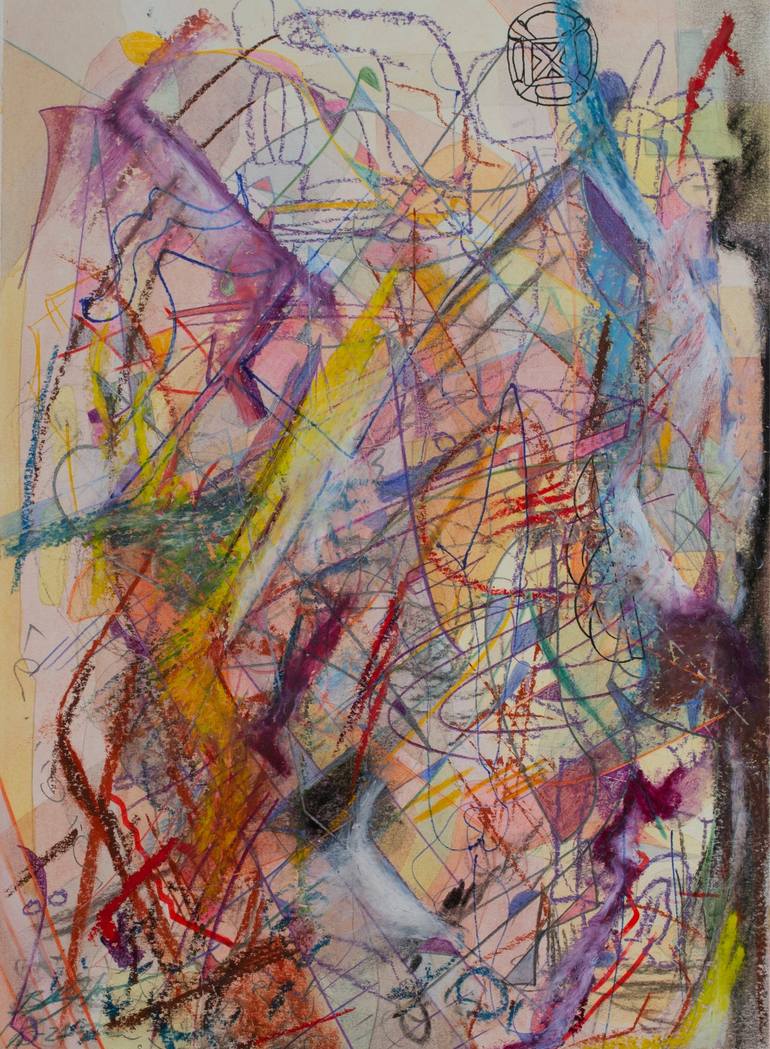 Part of larger series exploring mixed media techniques on various surfaces, here acrylic, charcoal , marker, ink, are mixed onto a stretched canvas. Using purposeful manipulation alongside random puddles and happenstances to occur the resulting interplay of structured and organic forms are used to d...