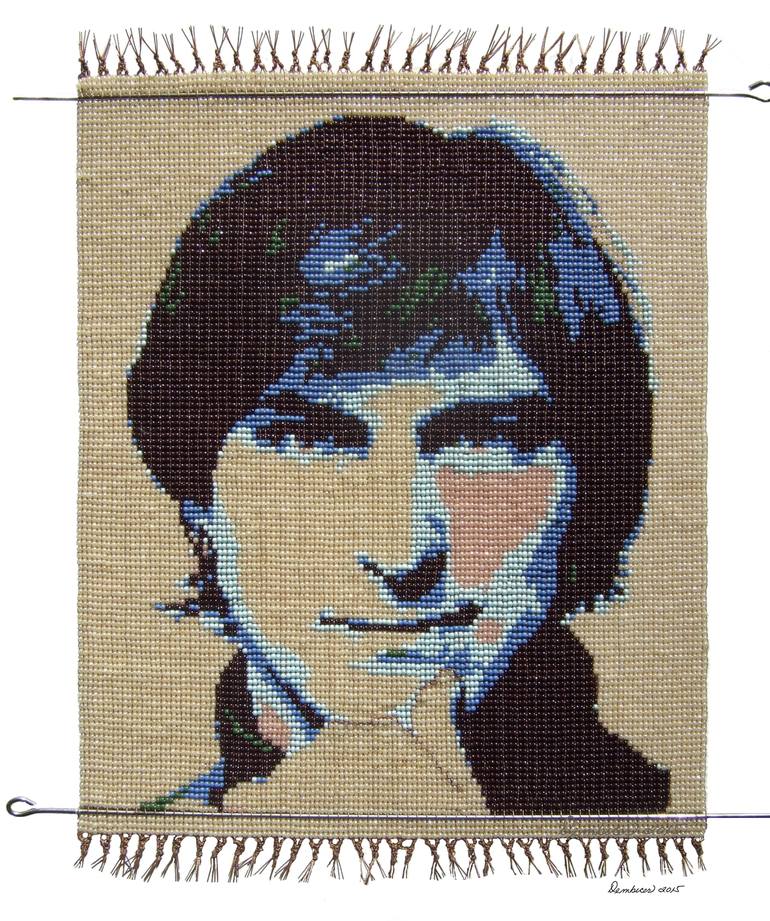 Beadweaving based on a portrait of Steve Jobs adapted from a 1984 photograph by Norman Seeff. This artwork is professionally framed with deep bevel matting and UV glass.