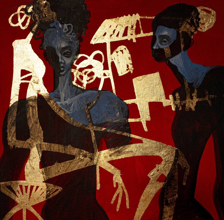 Mixed-media painting on canvas (acrylic and gold leaf) with a glossy finish and matte acrylic. The security of a well-balanced family environment can positively define the future of any being. Gold represents the immaterial and color the physical. Canvas is a medium that has proven its resistance ov...