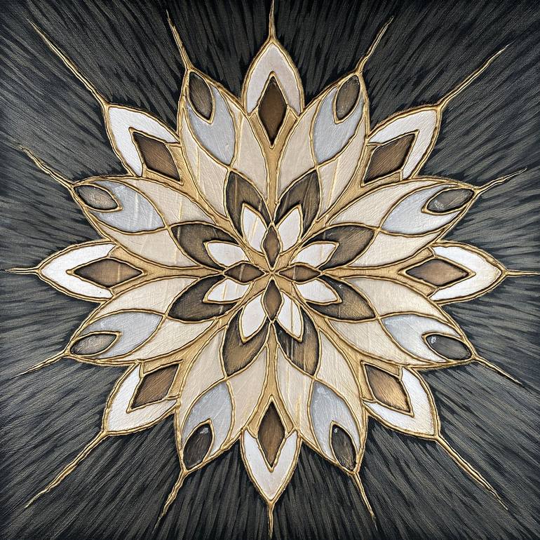 One of my favorite pieces, this Black Mandala artwork beautifully emulates the look of a weathered stained glass window, drawing inspiration from the Gothic rose windows of renowned cathedrals. The perfect symmetry of the intricate shapes contrasts with the intentionally uneven coloration, adding de...