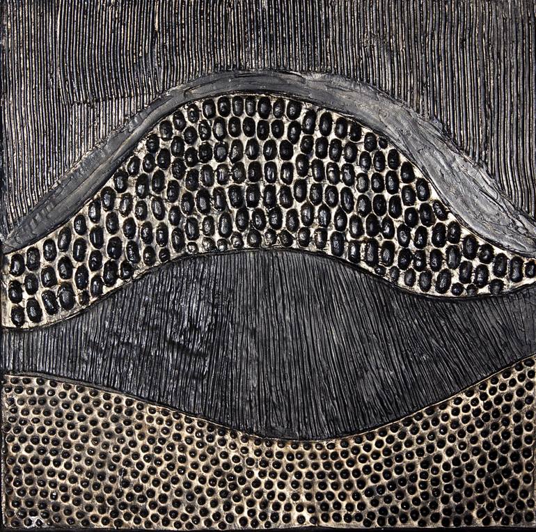 This abstract painting, created on a square canvas, is a unique work of art. Executed in a textured style, it utilizes two primary colors – black and gold. The interesting texture is achieved through the combination of two materials: clay and putty. This not only creates visual harmony but also intr...