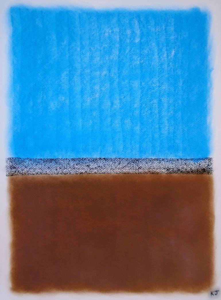 Abstract composition in a minimalist style; rectangular forms using colour and space. Fixed with professional fixative and rolled between acid-free tissue paper.