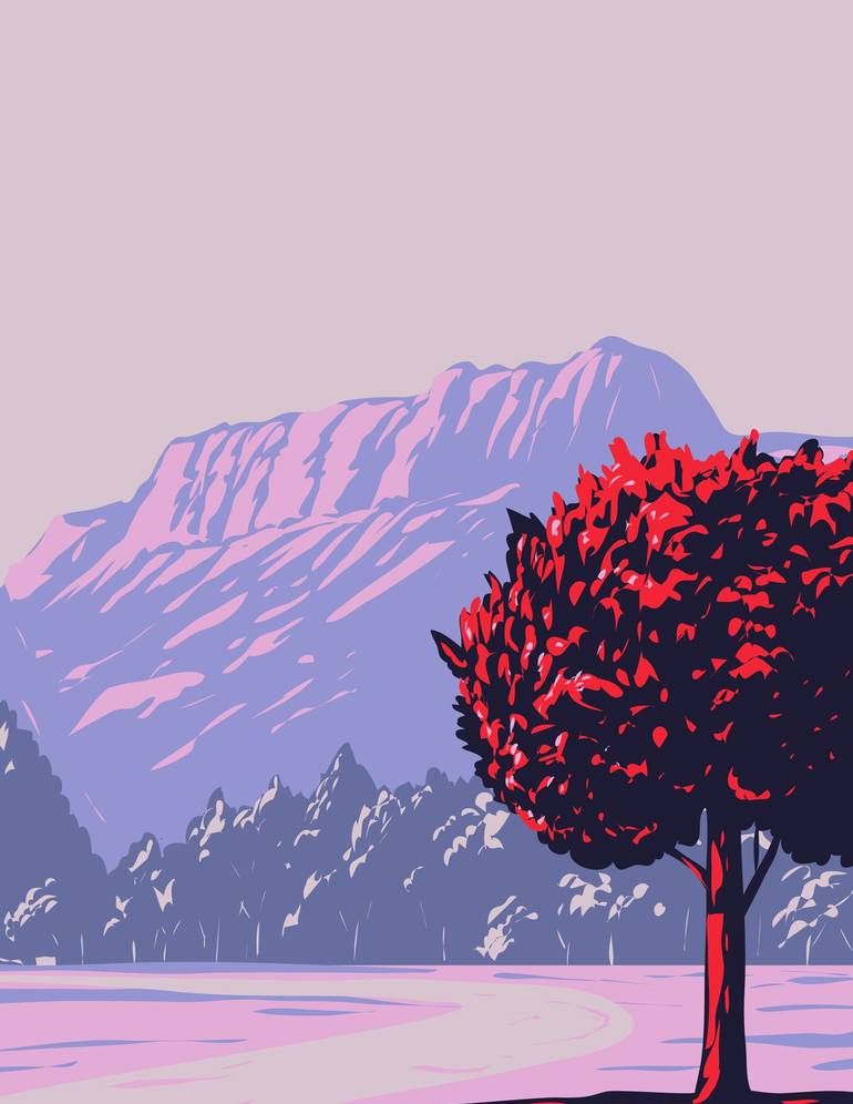 WPA poster art of Boysen State Park with Wind River Canyon located between Shoshoni and Thermopolis, Wyoming, United States of America done in works project administration style.