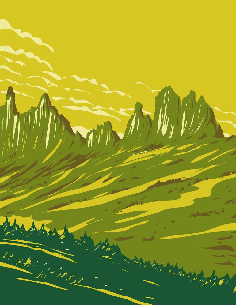 WPA poster art of Buffalo Bill State Park with Shoshone Canyon located in Park County, Wyoming, United States of America USA done in works project administration style.