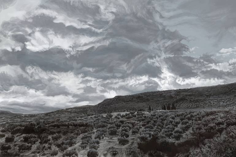 This series of work was inspired by the Andalusian scenery around where I live in Jaén in Spain. They started out as biro drawings, (as you can see in the process video linked below) and then the scanned drawing was used as the base for digital painting. The biro drawing also serves as the palette...