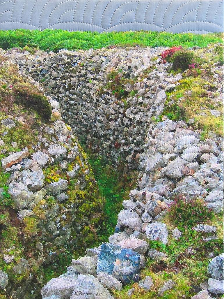 digitally manipulated photography, printing on cotton. hand quilted, gallery-wrapped on stretched canvas, ready to hang
