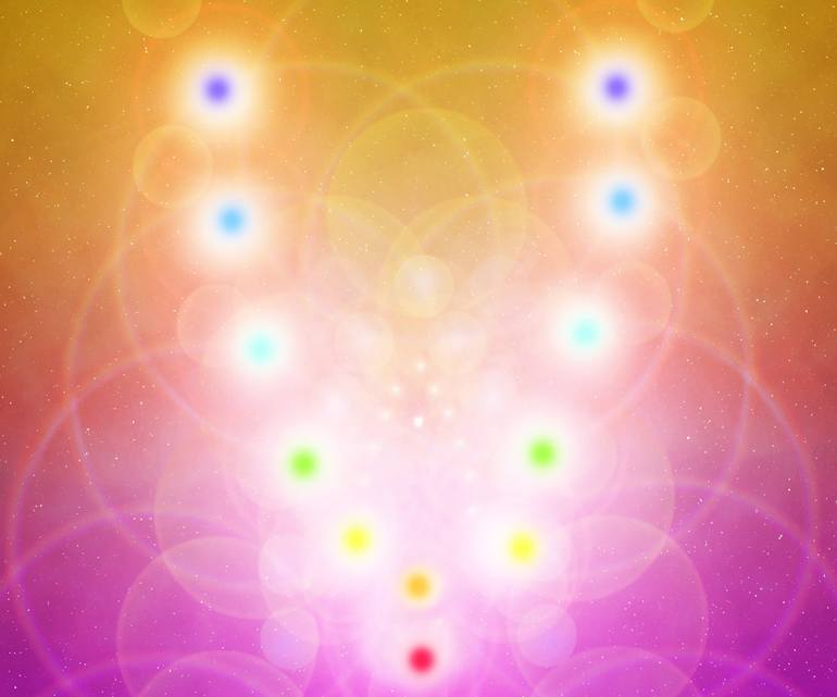 Lights that depict an angelic form with the colors of the chakras