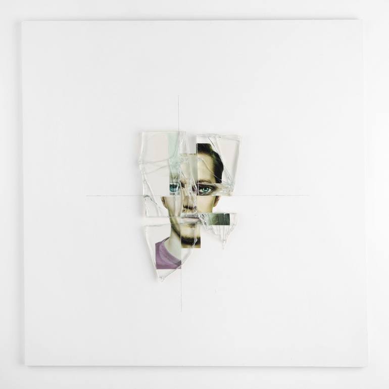 Chaos id is a serie of artworks based on the concept of liquid identity theorized by Z. Bauman . Photo collage protect by a cracked crystal portion mount on a woodboard panel. 40x40 cm , signed on the back + certificate of authenticity