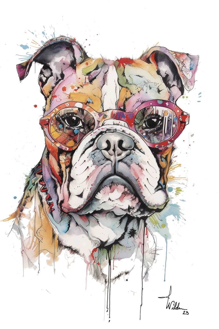 Title: Chilling Boxer Media: Mixed media watercolor Size: 12x18 inches (Framed: 18x24 inches) Artist: Jim Wildman Year: 2023 Series: Animals Immerse yourself in the captivating world of contemporary artistry with "Chilling Boxer," a masterpiece I've meticulously crafted. This unique artwork capture...
