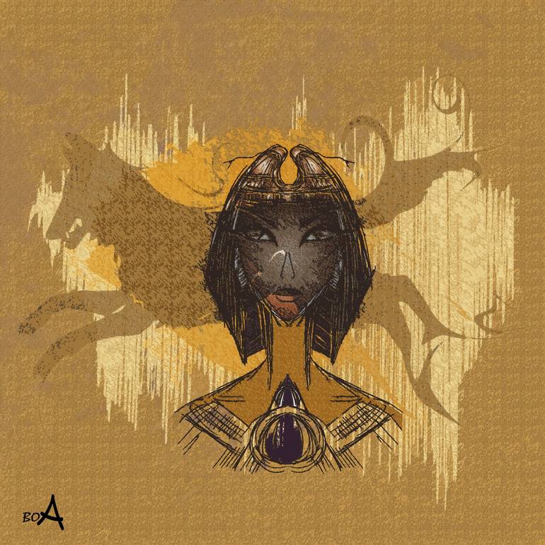 Cleopatra and jackal spirit. Modern. Contemporary art