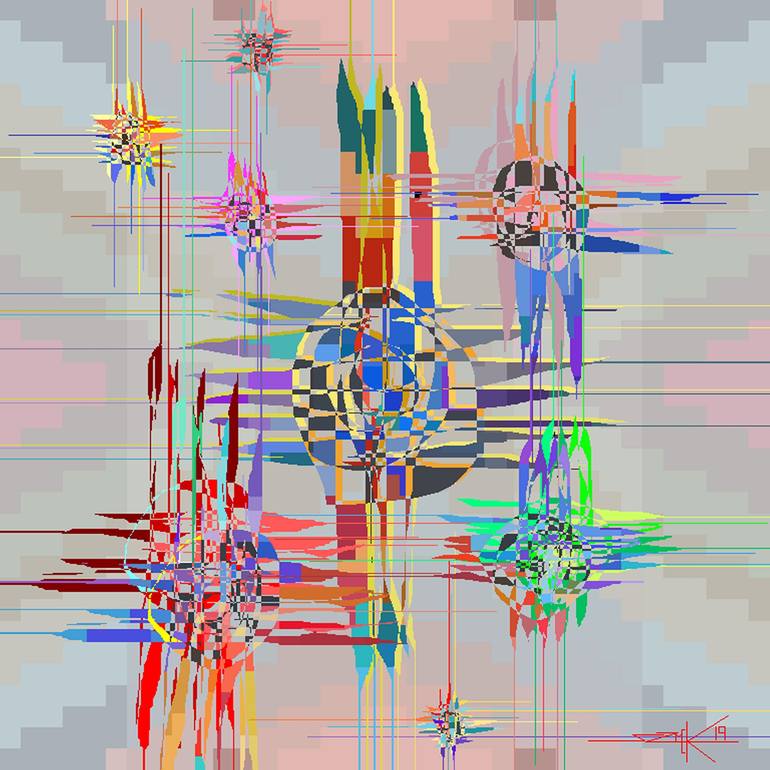 The original artwork consists of a digital file in .bmp format. It is created using the Microsoft Paint application. My paintings start out as a small white square and progress through the usual artistic processes of line, form and colour as well as substantial digital manipulation and enlargement. ...