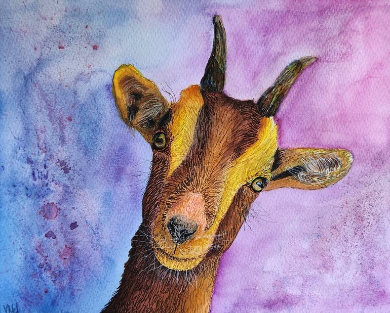 Contemporary Goat 10 x 8 inches Mixed Media Painting Farm Animal Print