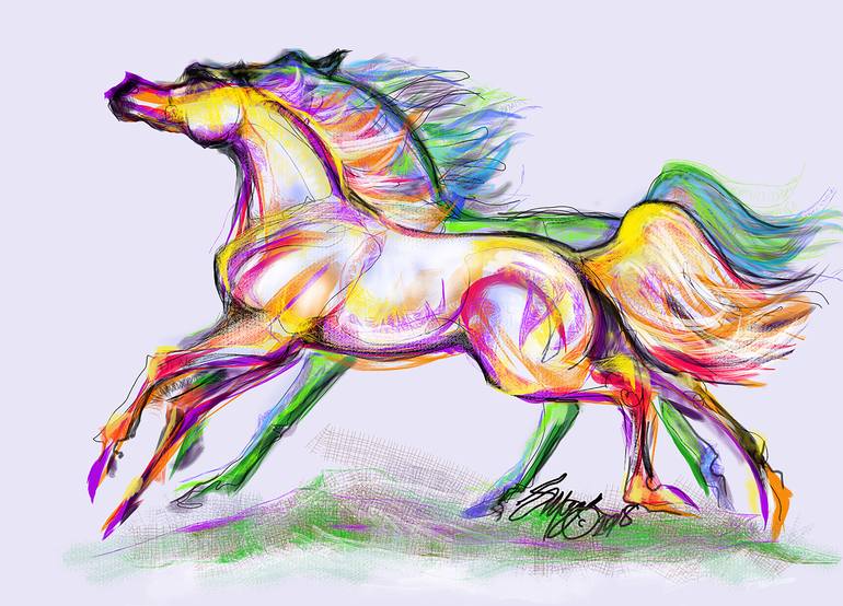 Stacey Mayer is known for the colorful horses she paints from her dreams; perhaps in reaction to the gray skies of her home town of Seattle; Stacey's artwork is filled with carousel bright horses that leave joy in their wake. Digital prints are available in several custom sizes.