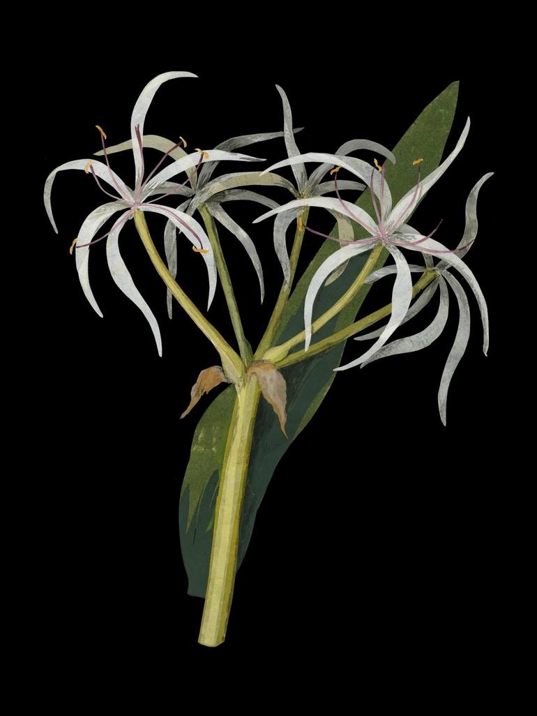 Mary Delany, Botanical, Floral, Flowers, Plants, Paper Collage, Paper Mosaic, 1700s, British, Antique, Black Background, Historical