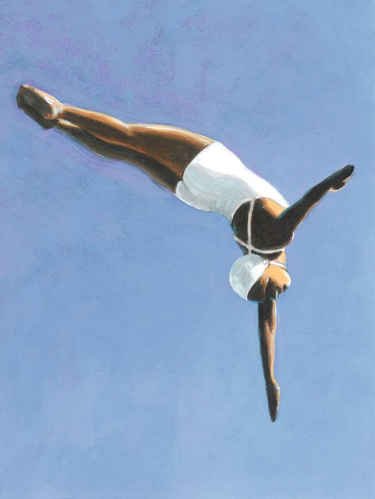 I enjoy painting athletes and especially high divers. They represent freedom, grace, strength and remind me to be courageous every day.