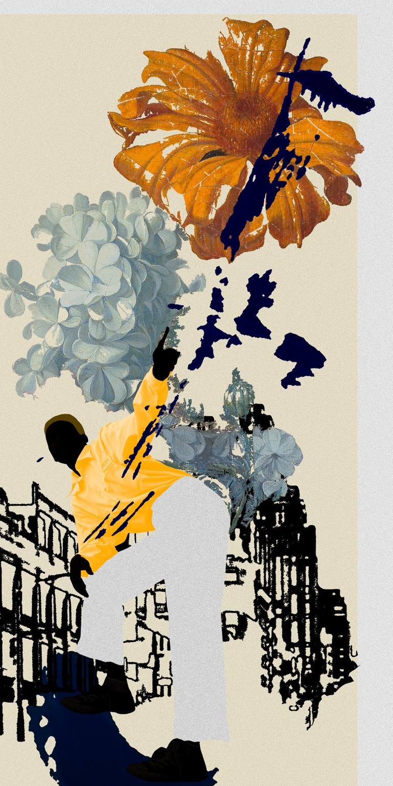 I want to talk about beauty, feelings, life stories, and contradictions—everything that makes us human. The central focus of my creations is the emotions that are omnipresent on this planet, regardless of creed or language; even before we learn to speak, we already demonstrate emotion. I explore not just the 'noble' feelings, but any and all feelings expressed in the contemporary world, amidst the intersections of social media, television, film, and music. Conveying strength, beauty, and everyday life through characters and their clothing, I use abstraction to show that reality is malleable. It may take decades to change, but it is real. The flowers present in all my works—whether featuring a character or a piece of clothing—convey emotions, dreams, and the hope of changing the reality of a community or oneself, recovering one's beauty and self-esteem. My artistic motivation stems from a dream common to every child of my social background: to change our family's situation and give them a better life. In art, I found this opportunity. Initially, I created to deal with my reality and my disillusionment with the academic world. Art called to me; I had to do it, even without fully knowing what I was doing at first. Nowadays, my art deals with emotions by creating images of people who, in Brazil's not-so-distant colonial past, were denied them, producing anguish and pain in their bodies. I recognize myself in an environment that remains largely unchanged—both at the university I attended and when walking down the street—feeling a certain strangeness in places where I still feel I don't fit in. My art is a way of resisting this. Resisting and reclaiming my humanity is what motivates my creation, even though during the colonial period this was stolen from my ancestors: Native Brazilians—the original people of South America—and Africans brought here against their will. My proposal is to work with the emotions of the body marginalized by colonization, creating an image that represents the beauty of these bodies, their contradictions, and their hopes. These are the same bodies described by colonizers as 'savage,' devoid of feelings or emotions. I portray how culture intersects with us and interferes with how we interpret and deal with the emotions that arise. Even if our hopes and dreams are ripped away or manipulated by algorithms, television, or other forms of communication, the emotions that arise are still as present as the dead flowers in my work.