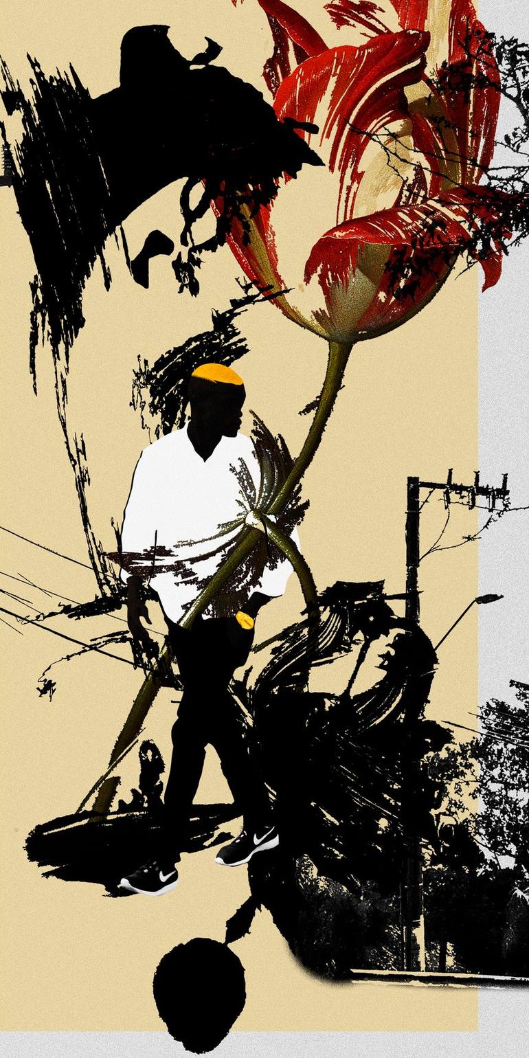 I want to talk about beauty, feelings, life stories, and contradictions—everything that makes us human. The central focus of my creations is the emotions that are omnipresent on this planet, regardless of creed or language; even before we learn to speak, we already demonstrate emotion. I explore not just the 'noble' feelings, but any and all feelings expressed in the contemporary world, amidst the intersections of social media, television, film, and music. Conveying strength, beauty, and everyday life through characters and their clothing, I use abstraction to show that reality is malleable. It may take decades to change, but it is real. The flowers present in all my works—whether featuring a character or a piece of clothing—convey emotions, dreams, and the hope of changing the reality of a community or oneself, recovering one's beauty and self-esteem. My artistic motivation stems from a dream common to every child of my social background: to change our family's situation and give them a better life. In art, I found this opportunity. Initially, I created to deal with my reality and my disillusionment with the academic world. Art called to me; I had to do it, even without fully knowing what I was doing at first. Nowadays, my art deals with emotions by creating images of people who, in Brazil's not-so-distant colonial past, were denied them, producing anguish and pain in their bodies. I recognize myself in an environment that remains largely unchanged—both at the university I attended and when walking down the street—feeling a certain strangeness in places where I still feel I don't fit in. My art is a way of resisting this. Resisting and reclaiming my humanity is what motivates my creation, even though during the colonial period this was stolen from my ancestors: Native Brazilians—the original people of South America—and Africans brought here against their will. My proposal is to work with the emotions of the body marginalized by colonization, creating an image that represents the beauty of these bodies, their contradictions, and their hopes. These are the same bodies described by colonizers as 'savage,' devoid of feelings or emotions. I portray how culture intersects with us and interferes with how we interpret and deal with the emotions that arise. Even if our hopes and dreams are ripped away or manipulated by algorithms, television, or other forms of communication, the emotions that arise are still as present as the dead flowers in my work.