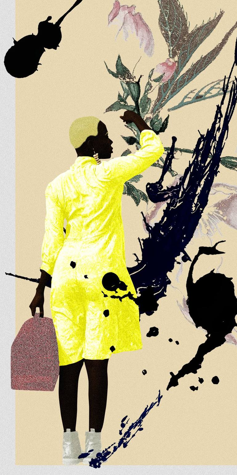 I want to talk about beauty, feelings, life stories, and contradictions—everything that makes us human. The central focus of my creations is the emotions that are omnipresent on this planet, regardless of creed or language; even before we learn to speak, we already demonstrate emotion. I explore not just the 'noble' feelings, but any and all feelings expressed in the contemporary world, amidst the intersections of social media, television, film, and music. Conveying strength, beauty, and everyday life through characters and their clothing, I use abstraction to show that reality is malleable. It may take decades to change, but it is real. The flowers present in all my works—whether featuring a character or a piece of clothing—convey emotions, dreams, and the hope of changing the reality of a community or oneself, recovering one's beauty and self-esteem. My artistic motivation stems from a dream common to every child of my social background: to change our family's situation and give them a better life. In art, I found this opportunity. Initially, I created to deal with my reality and my disillusionment with the academic world. Art called to me; I had to do it, even without fully knowing what I was doing at first. Nowadays, my art deals with emotions by creating images of people who, in Brazil's not-so-distant colonial past, were denied them, producing anguish and pain in their bodies. I recognize myself in an environment that remains largely unchanged—both at the university I attended and when walking down the street—feeling a certain strangeness in places where I still feel I don't fit in. My art is a way of resisting this. Resisting and reclaiming my humanity is what motivates my creation, even though during the colonial period this was stolen from my ancestors: Native Brazilians—the original people of South America—and Africans brought here against their will. My proposal is to work with the emotions of the body marginalized by colonization, creating an image that represents the beauty of these bodies, their contradictions, and their hopes. These are the same bodies described by colonizers as 'savage,' devoid of feelings or emotions. I portray how culture intersects with us and interferes with how we interpret and deal with the emotions that arise. Even if our hopes and dreams are ripped away or manipulated by algorithms, television, or other forms of communication, the emotions that arise are still as present as the dead flowers in my work.
