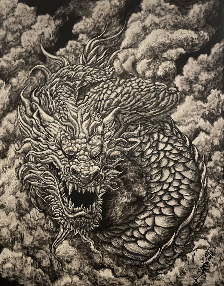 The legend of dragons is as old as civilization itself. One of the most iconic image in all of fantasy art is the dragon. Powerful, ancient and beautiful it has for millennia captivated the minds of artists, writers and story tellers. Therefore I decided to etch this beautiful mythical creature.