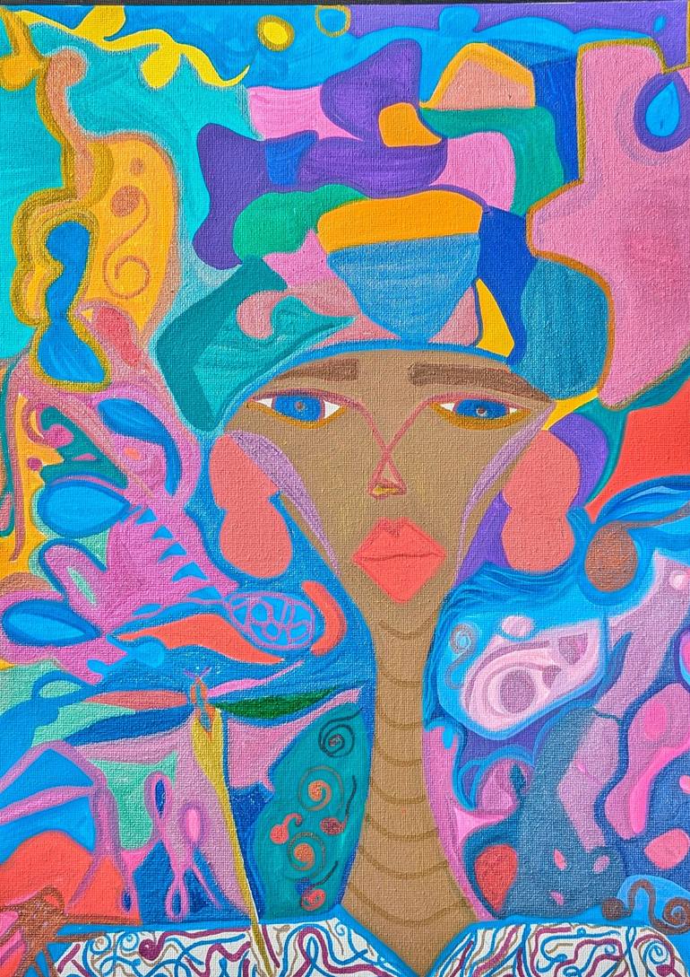 A bold, intuitive portrait of the feminine spirit — layered, colourful, and a little bit chaotic (just like us). Painted in a dreamy swirl of symbols, emotion, and unapologetic colour- She’s not just a vibe — she’s a whole frequency. Created with acrylic and paint pens on canvas, this piece reflects...