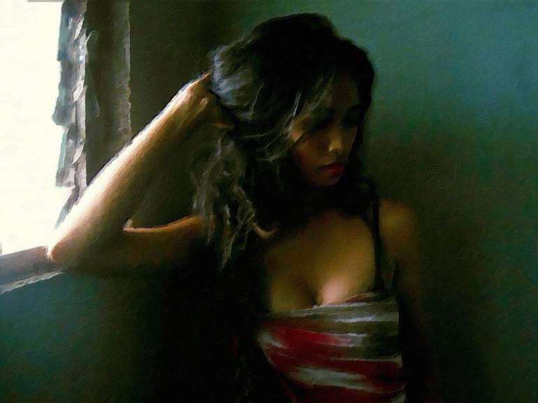 Female Portrait Digital Painting Artwork by: Avriahartz | ''Glimpses'' ''Glimpses'' is a female portrait photography that captures the passion and emotions of a person through visual creations. A female portrait digital painting artwork with a subtle glimpses of memories and dreams Emphasize wi...