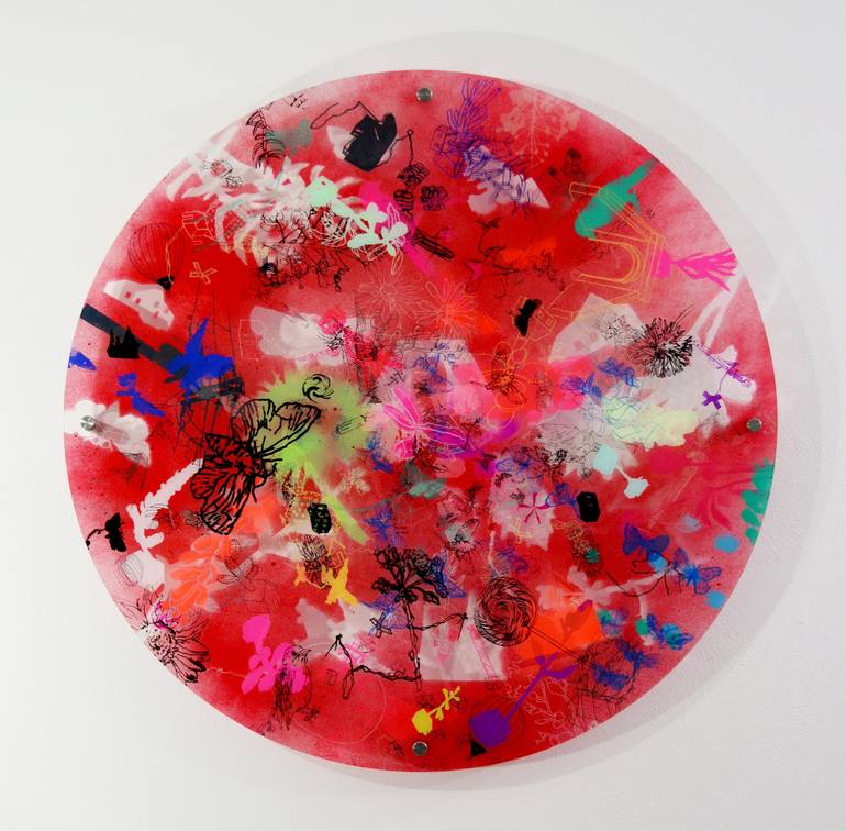 Painting: Acrylic, Spray Paint, Ink, Plastic, Screenprinting Printmaking: Acrylic, Spray Paint, Plexiglass. The use of circular forms in my work enhances the awareness of the cyclical nature of life. Specifically, how our inner library of iconography and memories allow us to travel backwards and ...