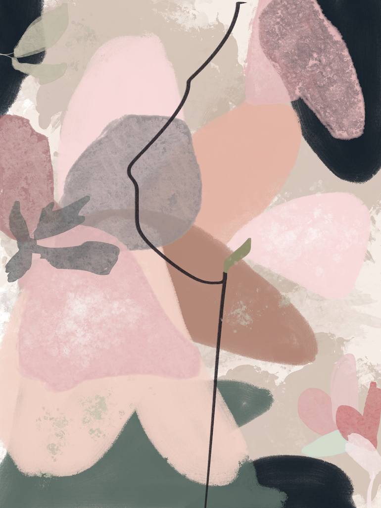 Nature Wall Art - Overlapping Flower Petals - Foliage Leaves - Meadow Garden - Floral Landscape - Botanical Scenery - Geometric Shape & Form - Vibrant & Soft - Translucent - Pastel Pink - Hazelnut Brown - Mauve Gray - Smokey Taupe - Coral - Dusty Red - Sage - Olive Green - Dark Cyan - Almost...