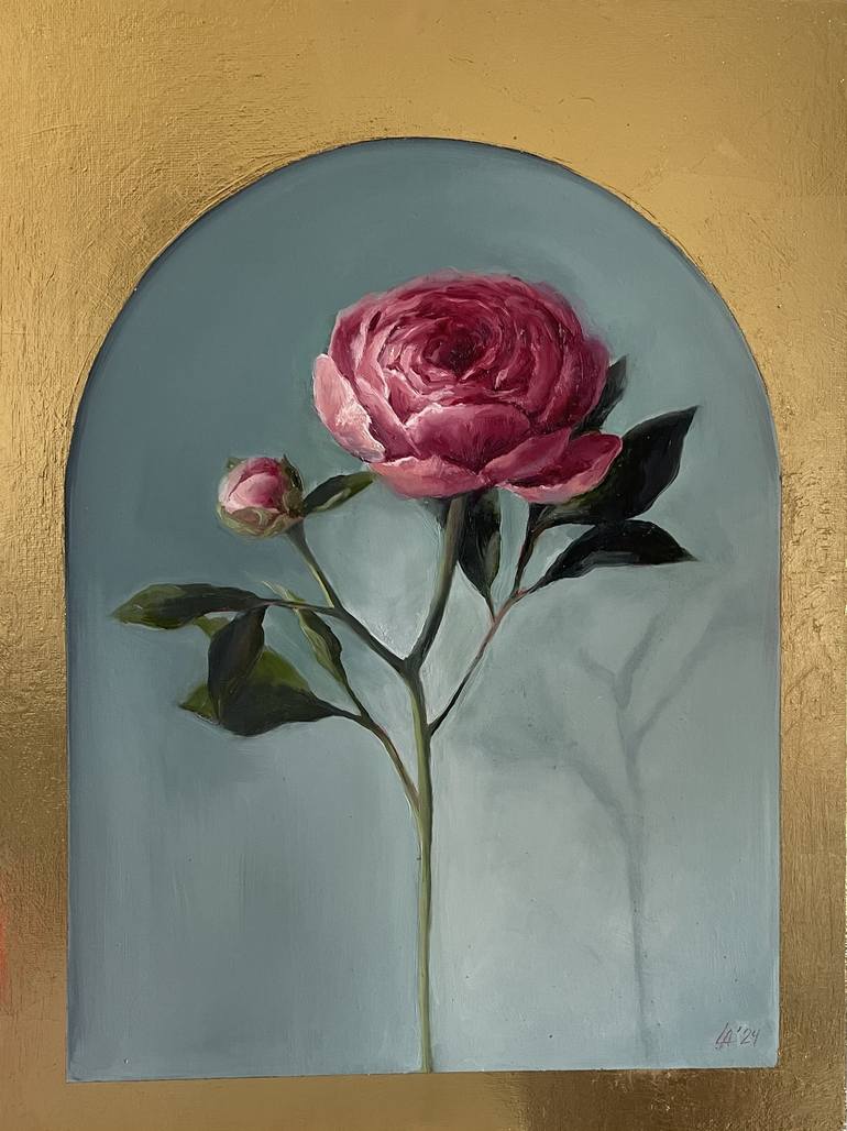 Reality is my safe space Part of the "Flower Portraits" series, this piece captures the lush elegance of a blooming peony. Symbolizing romance, prosperity, and the fleeting nature of beauty, the peony’s rich pink petals contrast with the serene blue background, drawing attention to its intricate la...