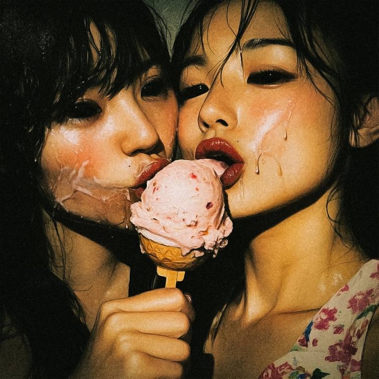 Forbidden Cravings explores the depths of human desire and the shadow self, inspired by Carl Jung's theories of the unconscious. This piece captures an intimate, provocative moment between two figures sharing a melting ice cream, a metaphor for fleeting pleasure and unrestrained indulgence. The inte...