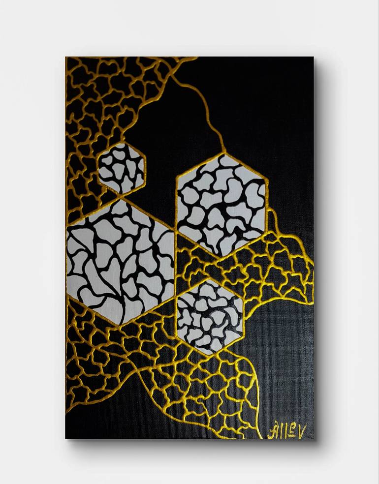 "Golden Web" This work was born from a deep inspiration drawn from natural structures and their harmony with abstract forms. Observing the world, I am always amazed at how nature creates a perfect balance between chaos and order – from the patterns on leaves to the honeycomb of a beehive and the de...