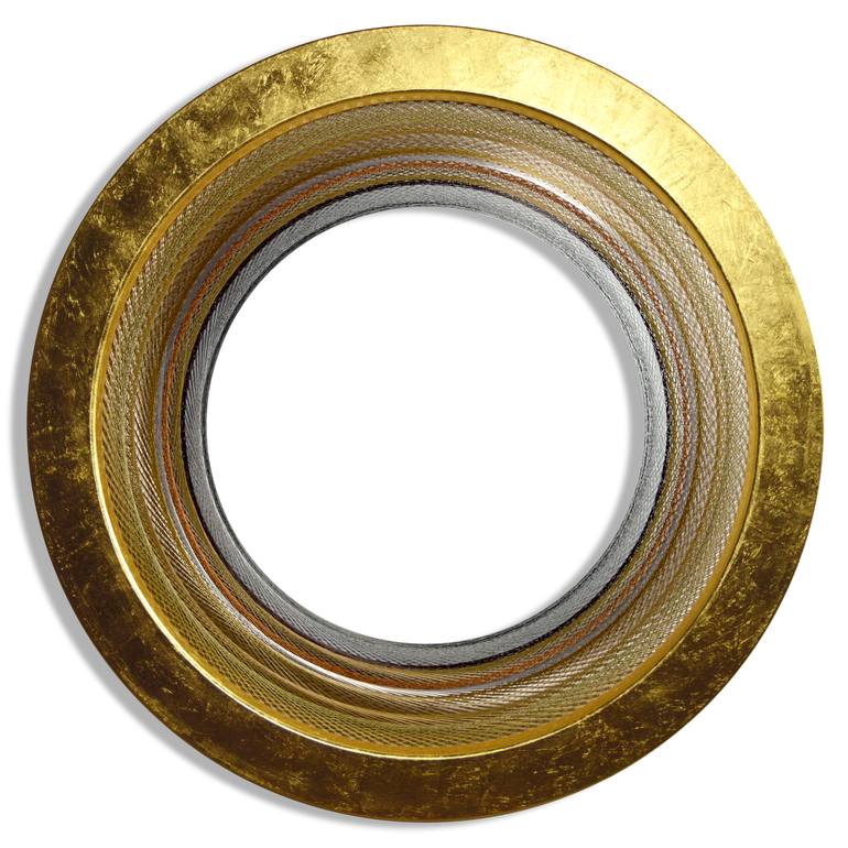 This artwork is part of the piece Halo Mediterraneo inspired by The Mediterranean and glorious Spanish Sun. This piece is woven with quality polyester threads in a bespoke hand made golden frame shaped as a halo. The piece signature is wax stamped on reverse.