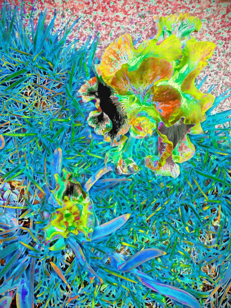 I'm in awe of nature. Tell me what's more beautiful than nature in all its glory? This is a digitally edited/manipulated photograph of colorful garden leaves and flowers.