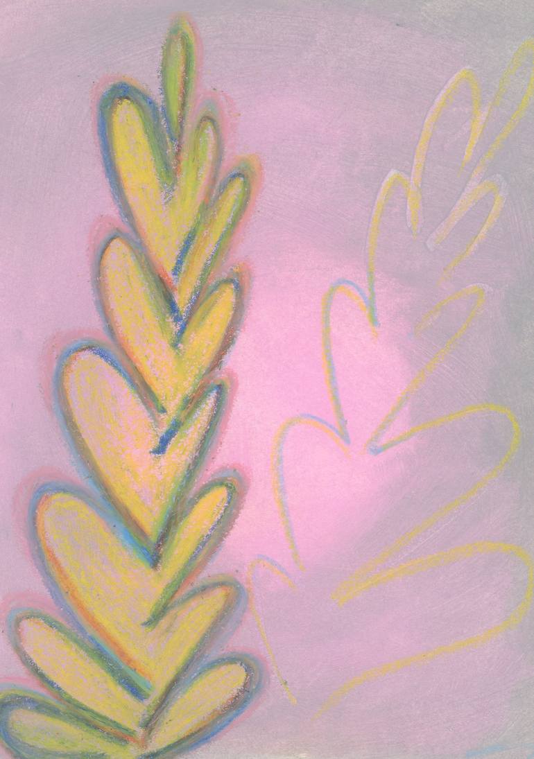 This oil pastel drawing is an abstraction of the artist's intentions to recollect memories from childhood. The artist's achievement of this composition was spontaneous and is expressing the colorful environment of her grandmother's sewing studio where she was taught to embroider, sew and cut fabri...