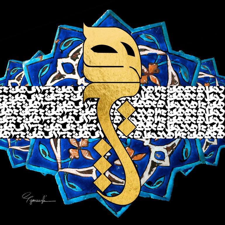 special design printed on canvas mixed media : acrylic color , gold leaf This is Molana's poem( HICH) it means "nothing". he s saying everything in this world is nothing so dont care about anything. this poem is so familiar between Iranian and Turkish people.