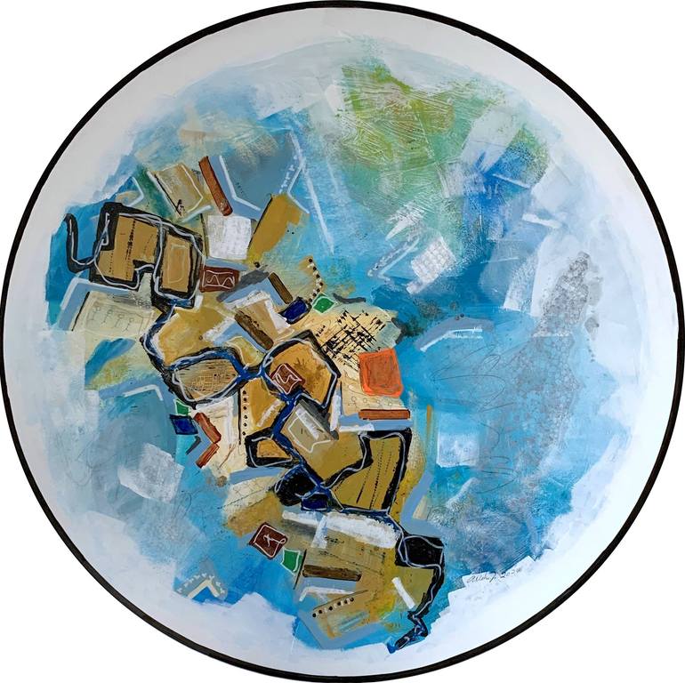 Audra is a free-spirited British-born Jamaican Canadian abstract and mixed media artist in Toronto. She is a trained Sociocultural Anthropologist, who believes as humans, art is a manifestation of our curiosity about the material world and, as such, an essential part of what it means to be human. Audra borrows from Intuitive and Tactile Art forms to explore this relationship between art and the human experience. Her work is characterized by a dense network of crisscrossing (and squiggly) lines separating rectangles of multiple shapes, made of different materials, earthy and celestial colours and textures from her use of materials such as sand and stone. Viewers of her work are stimulated through an alternation of physical and visual surfaces.