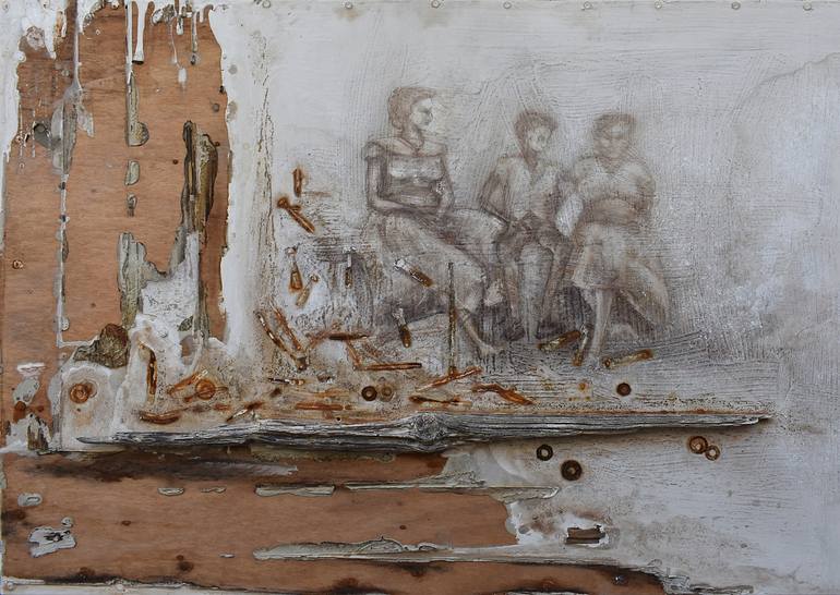 For Milena Nicosia, art is breath, narrative, eternity. Born in Sicily, she has been painting since she was 4 years old and has never lost the enthusiasm for it. Her studies at the Academy of Fine Arts in Florence were rich in stimuli: Alchemy, Aesthetics, Philosophy, Symbology, and Art History left her with an endless desire for experimentation. Her production has evolved hand in hand with her lived experience. There was a period dominated by the warmth of "beds," the passion of her twenties mixed with melancholy, longing, and "absences." Her voids contained presences, smells, and suggestions. Since 2005, warmth and emotions in her works have been replaced by coldness and austerity, marked by traces of "clothes stripped off the body," essences in prints that preserve a form no longer there. The color was that of an archaeological or black-and-white photographic relic. Her perception of things is intimate and sacred; the material and immaterial imprints life leaves behind are her great source of inspiration. Her works, feminine and mysterious, hold stories and life accounts even when they appear abstract or metaphysical. Her color is not realistic but emotional. Her painting style involves removing, carving, or corroding the surface, both technically and philosophically. Much like a sculptor or archaeologist, she sees the image on the surface, letting herself be carried away and inspired. The works created from 2016 to today are tied to the poetry of "contemporary ruins," narrating lives lived through the mute language of nostalgia, spaces far from any logic where the mind is the only guide. Using art, she constructs a personal inner signage in the incomprehensible ocean of existence, reconciling everything with the idea of lost beauty, her ideal refuge. She often uses the dialoguing power of objects and the fragment's power to open doors to storytelling, sometimes imaginative but hinting at premonitions and omens. Her fragments and debris symbolize fears but also rebellion and resilience. From 2020 onwards, after metabolizing the experience of Covid that marked everyone’s lives with its unexpected absurdity, Milena poured all her feelings into art, freeing her voice through material, form, sign, and vision. She used art to reconstruct a personal path through lived and projected feelings, emotions, and fears, bringing to life the “Nests.