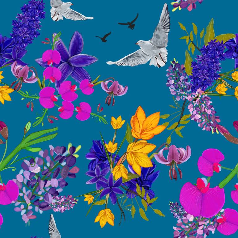 Istanbul flowers artwork made with graphic tablet from original artwork and digitized and modified. In this work, I was inspired by the rare flowers of Istanbul and the Bosphorus. While feeling the colorful and cosmopolitan structures of Istanbul, I wanted them to cheer up by choosing vibrant colors...