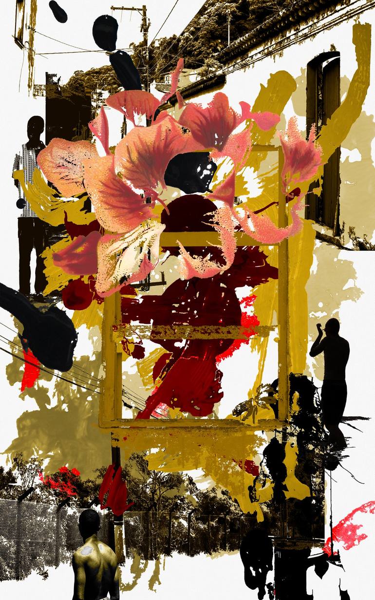 I want to talk about beauty, feelings, life stories, and contradictions—everything that makes us human. The central focus of my creations is the emotions that are omnipresent on this planet, regardless of creed or language; even before we learn to speak, we already demonstrate emotion. I explore not just the 'noble' feelings, but any and all feelings expressed in the contemporary world, amidst the intersections of social media, television, film, and music. Conveying strength, beauty, and everyday life through characters and their clothing, I use abstraction to show that reality is malleable. It may take decades to change, but it is real. The flowers present in all my works—whether featuring a character or a piece of clothing—convey emotions, dreams, and the hope of changing the reality of a community or oneself, recovering one's beauty and self-esteem. My artistic motivation stems from a dream common to every child of my social background: to change our family's situation and give them a better life. In art, I found this opportunity. Initially, I created to deal with my reality and my disillusionment with the academic world. Art called to me; I had to do it, even without fully knowing what I was doing at first. Nowadays, my art deals with emotions by creating images of people who, in Brazil's not-so-distant colonial past, were denied them, producing anguish and pain in their bodies. I recognize myself in an environment that remains largely unchanged—both at the university I attended and when walking down the street—feeling a certain strangeness in places where I still feel I don't fit in. My art is a way of resisting this. Resisting and reclaiming my humanity is what motivates my creation, even though during the colonial period this was stolen from my ancestors: Native Brazilians—the original people of South America—and Africans brought here against their will. My proposal is to work with the emotions of the body marginalized by colonization, creating an image that represents the beauty of these bodies, their contradictions, and their hopes. These are the same bodies described by colonizers as 'savage,' devoid of feelings or emotions. I portray how culture intersects with us and interferes with how we interpret and deal with the emotions that arise. Even if our hopes and dreams are ripped away or manipulated by algorithms, television, or other forms of communication, the emotions that arise are still as present as the dead flowers in my work.