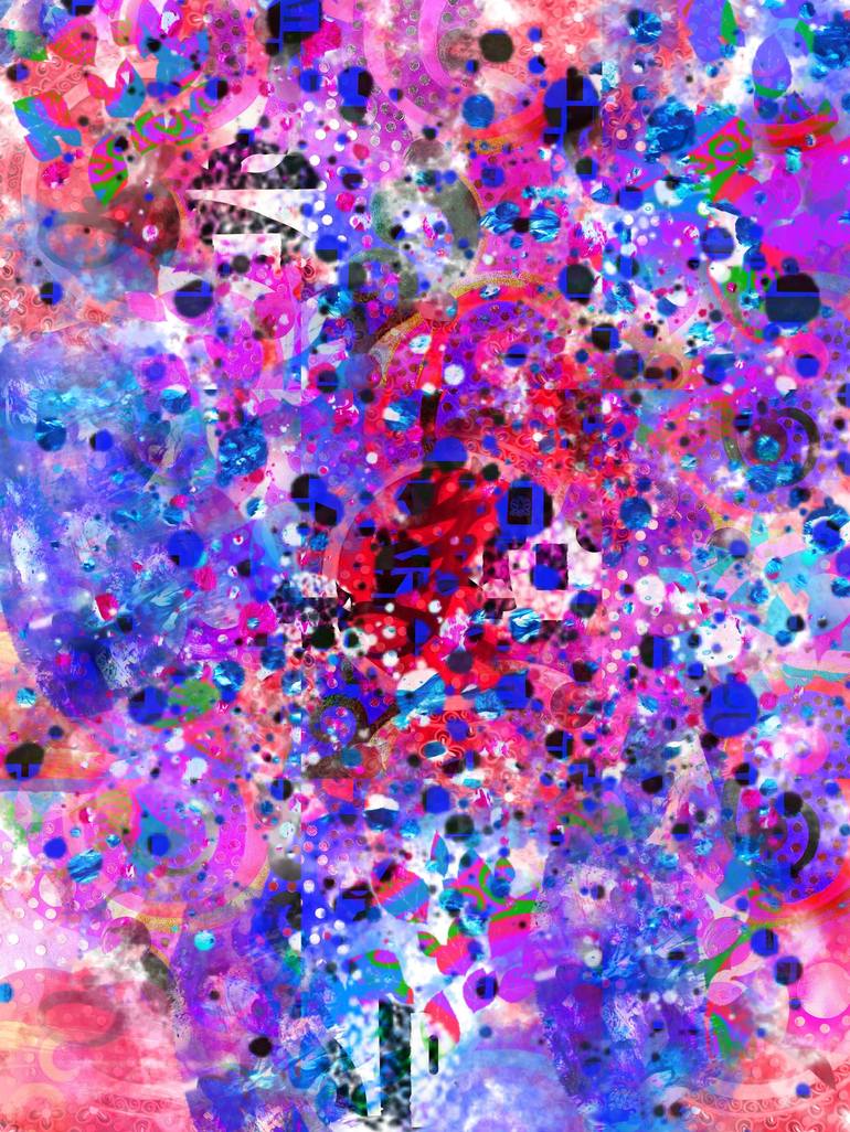 Kaleidoscopic Dreams 39 is inspired by the kaleidoscope, and Chinese calligraphy to form an abstract digital collage comprising of different textures and patterns that explode in the air like fireworks.