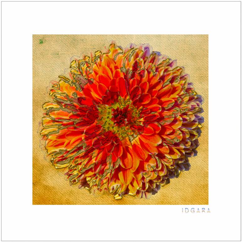 Kiku: Recreation of a golden flower. Combination of photograph and digital filters. IDGARA 2019