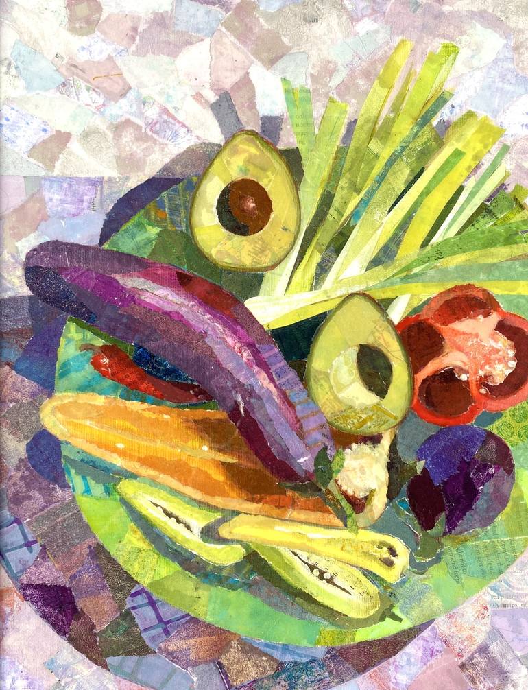 I paint 5 days a week at my studio at the Pendleton Art Center in Cincinnati, Ohio. My studio is open by appointment and on the last Friday of every month . You will find me on the fifth floor in studio 510A. I am the daughter of an industrial engineer and an artist. My dad was the engineer, and I learned about spatial relationships and design from watching him build model airplanes. Both parents encouraged me to draw and to make things with my hands. My mother was a creative person. It was the 70s, so she was home with us. She taught me to sew, which is something that I still love to do. I graduated from Ohio University and worked as a graphic designer for 20 years. In 2007, I trained at the Midwest Culinary Institute in Cincinnati, to be a personal chef. I operated a small catering and personal chef business for 4 years. Since 2013, I have had the opportunity to refocus my career path, again, and to make fine art. I am a painter working in several media. In 2020, I started a large series of still life paintings in oil and cold wax. The perspective of those paintings interested me very much, and I have continued to create paintings that are similar, but done in torn paper. I do a lot of commission work. It is a joy to work with clients to create special paintings for their homes. We sit down and talk about ideas. I design a concept, then provide images to help the client visualize the concept. Once we arrive at a plan, I create the original artwork and document the process as it unfolds. My paintings are held in private collections in the US (Florida, Illinois, Indiana, Kentucky, Missouri, Ohio and Texas) and in Milan, Italy.